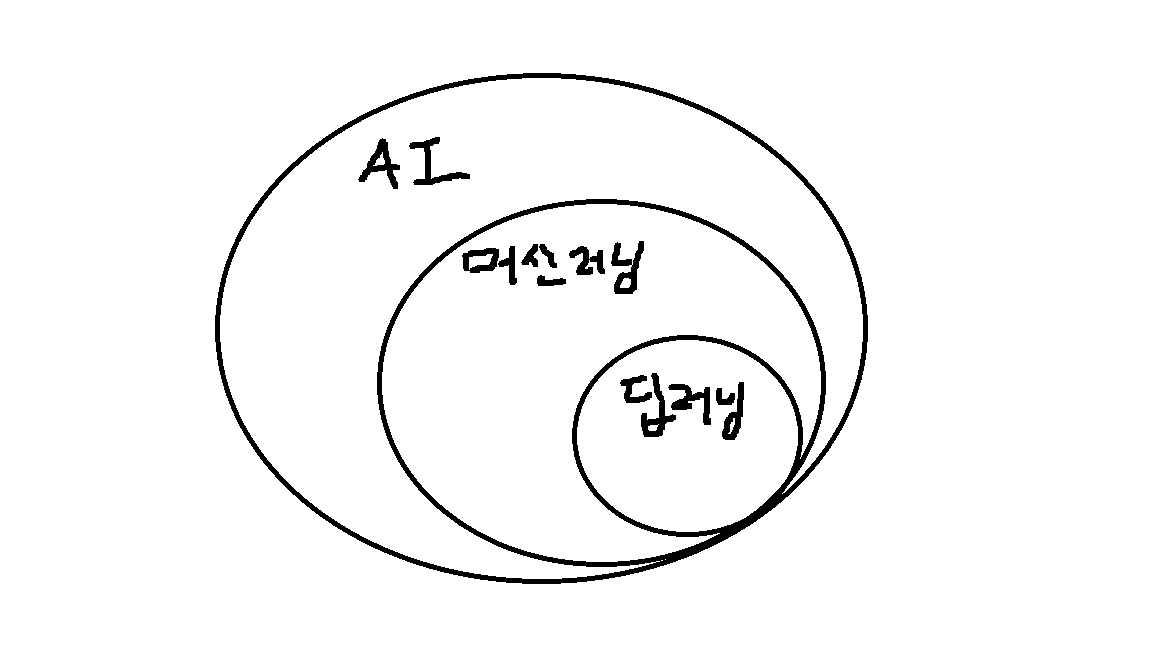 AI가 머신러닝과 딥러닝을 포함하는 관계이다.