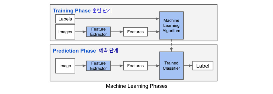 위가 머신러닝, 아래가 딥러닝의 학습 방법인데