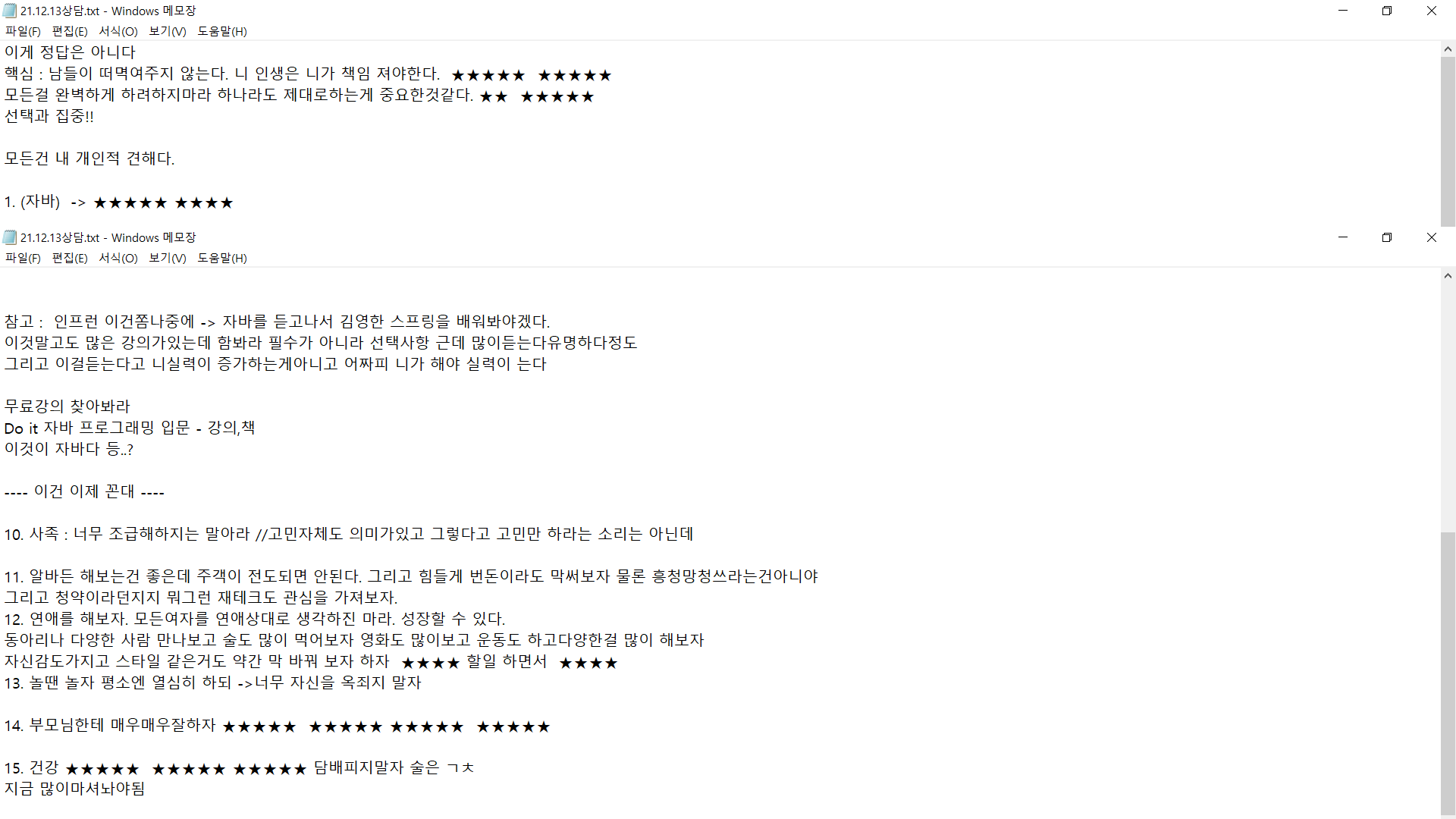 이번 방학을 헛되이 보내지 않아야 겠다는 생각과
