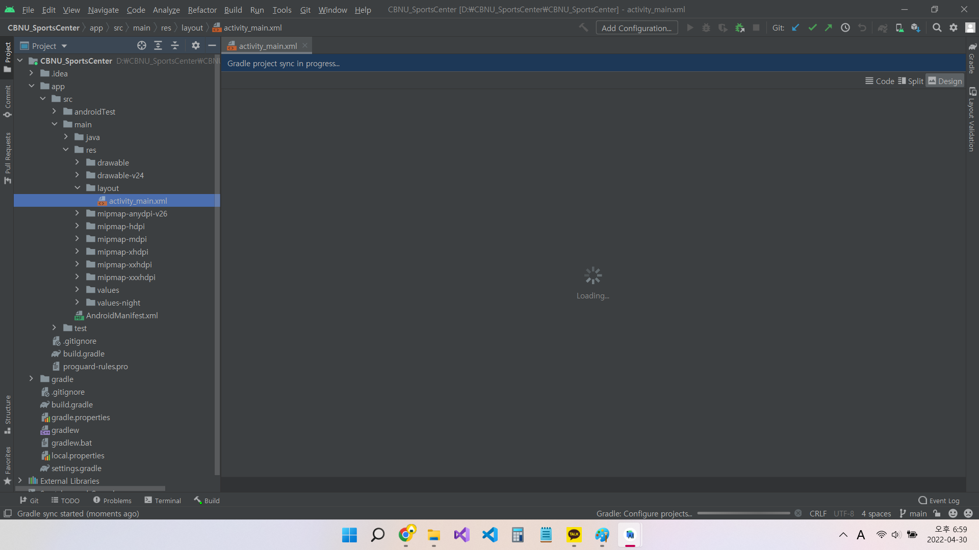 Gradle project sync in progress라는 알림이 뜨면서 loading을 하고