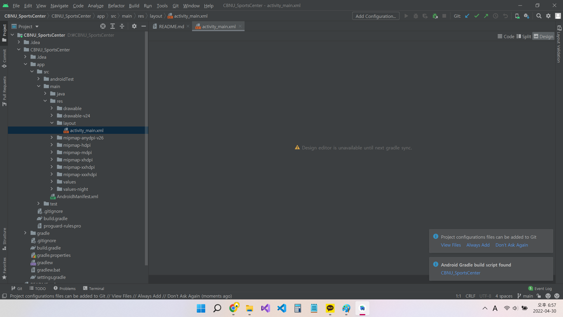 design editor is unavailable until next gradle sync라는 오류가 뜬다