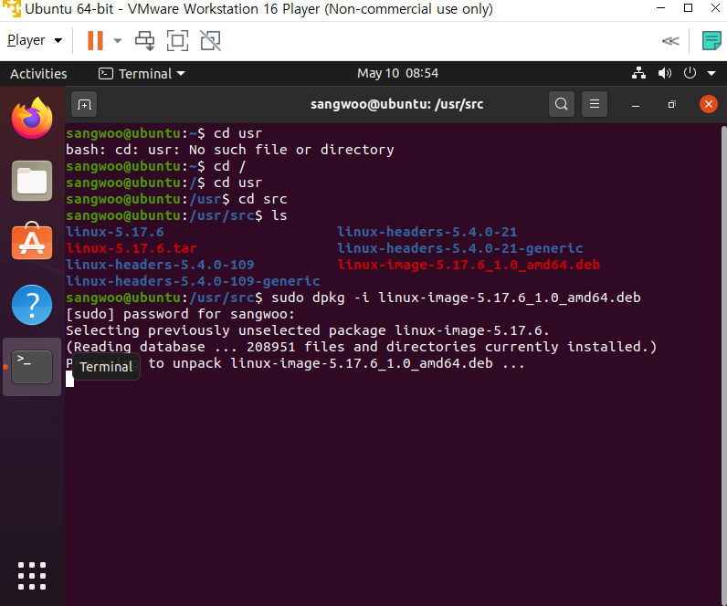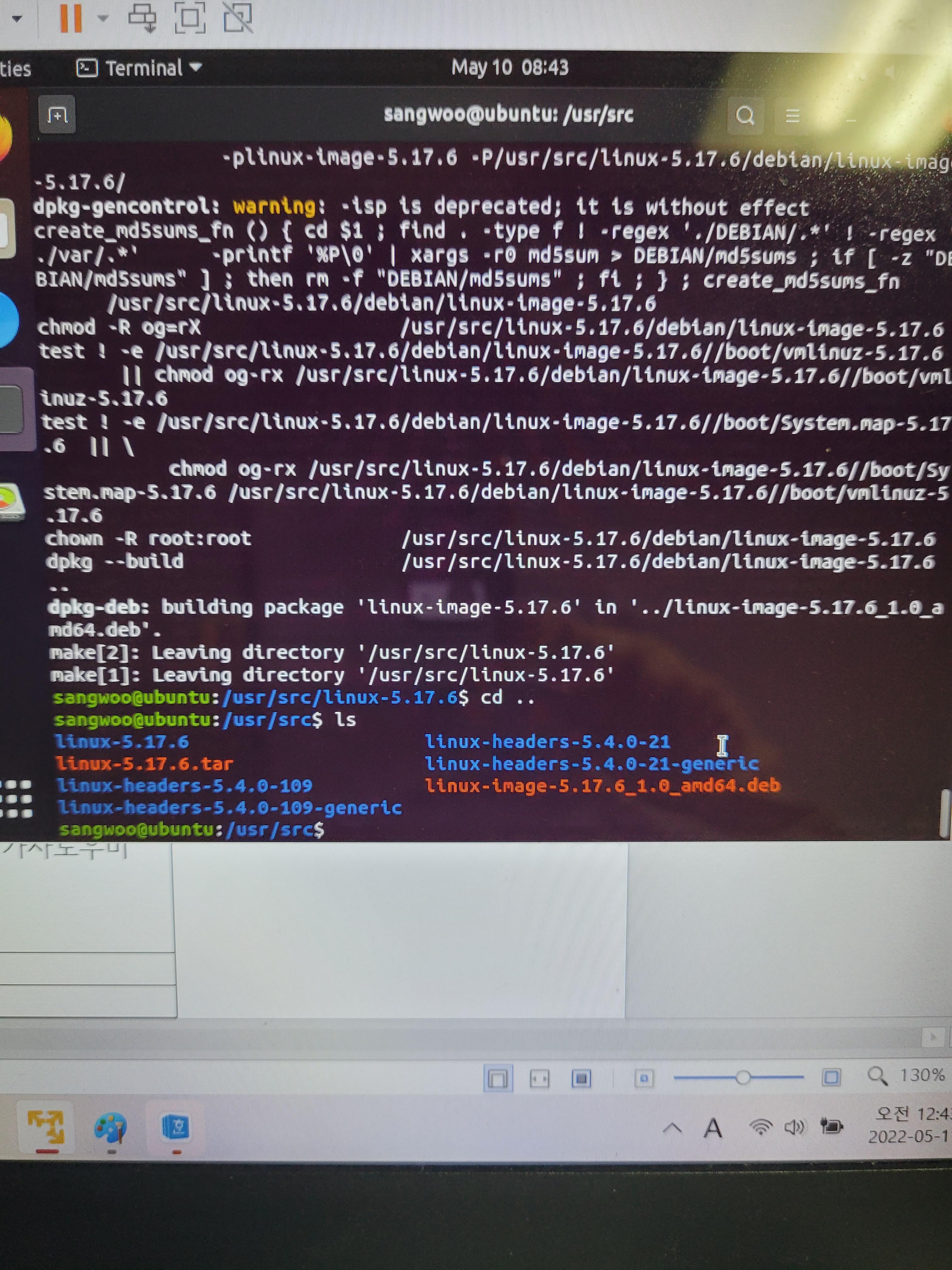 sudo dpkg -i linux-image-5.17.6_1.0_and64.deb했는데