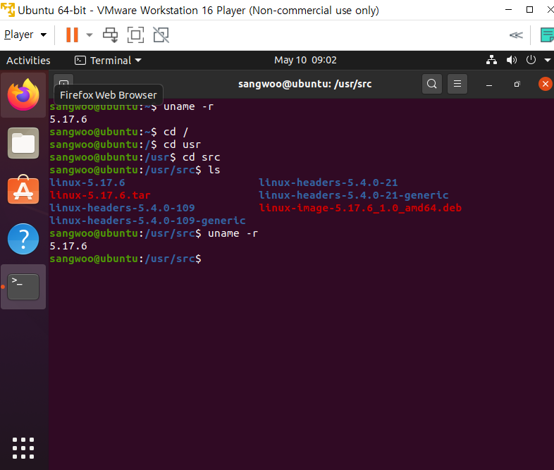 커널버전이 기존의 5.4.0-109-generic에서 5.17.6으로 바뀐거를 확인할 수 있었다