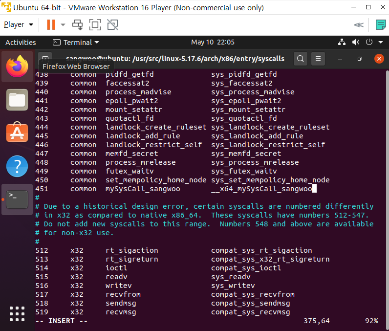 undefine reference to '__x64_mySyscall_sangwoo'라는걸보면