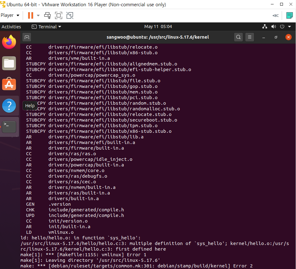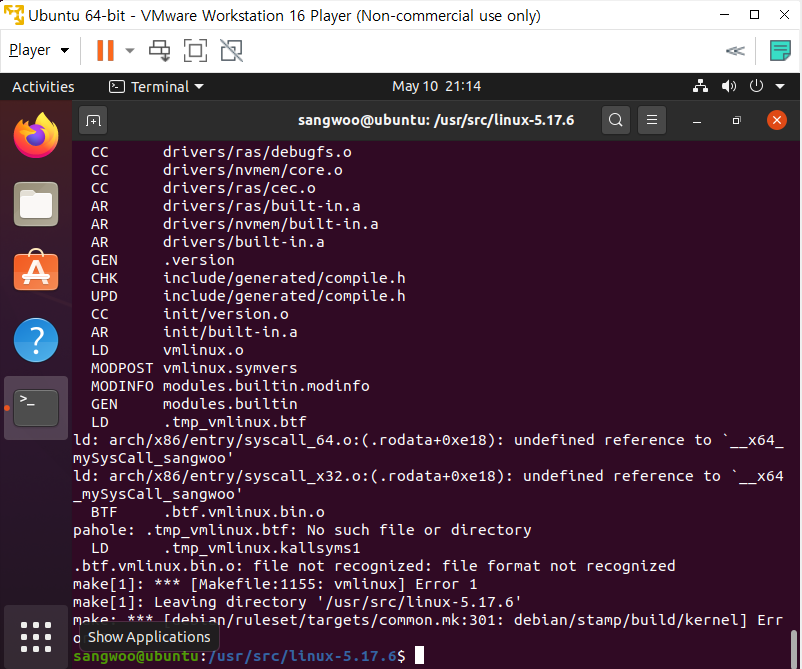 나는 ubuntu 18.04, kernel 5.17.6이었는데