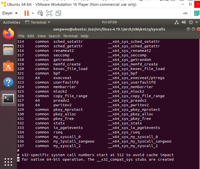 syscall_64.tbl에 맨 오른쪽 __나 __x64가 붙어있는데