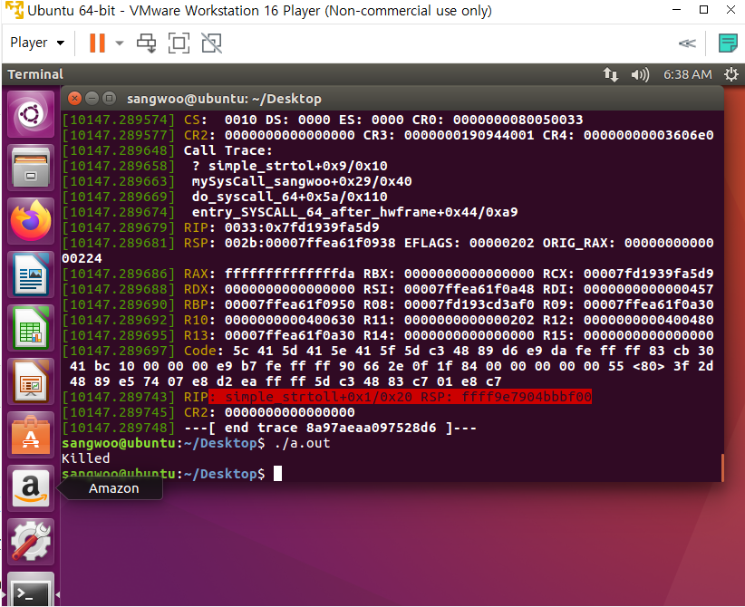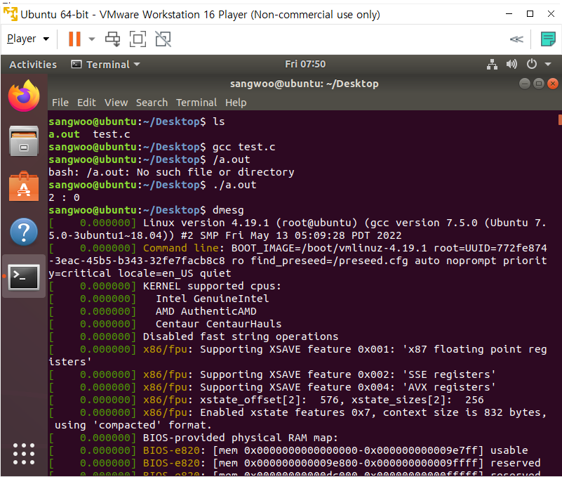 그리고 시스템호출 결과는 dmesg를 통해 확인한다