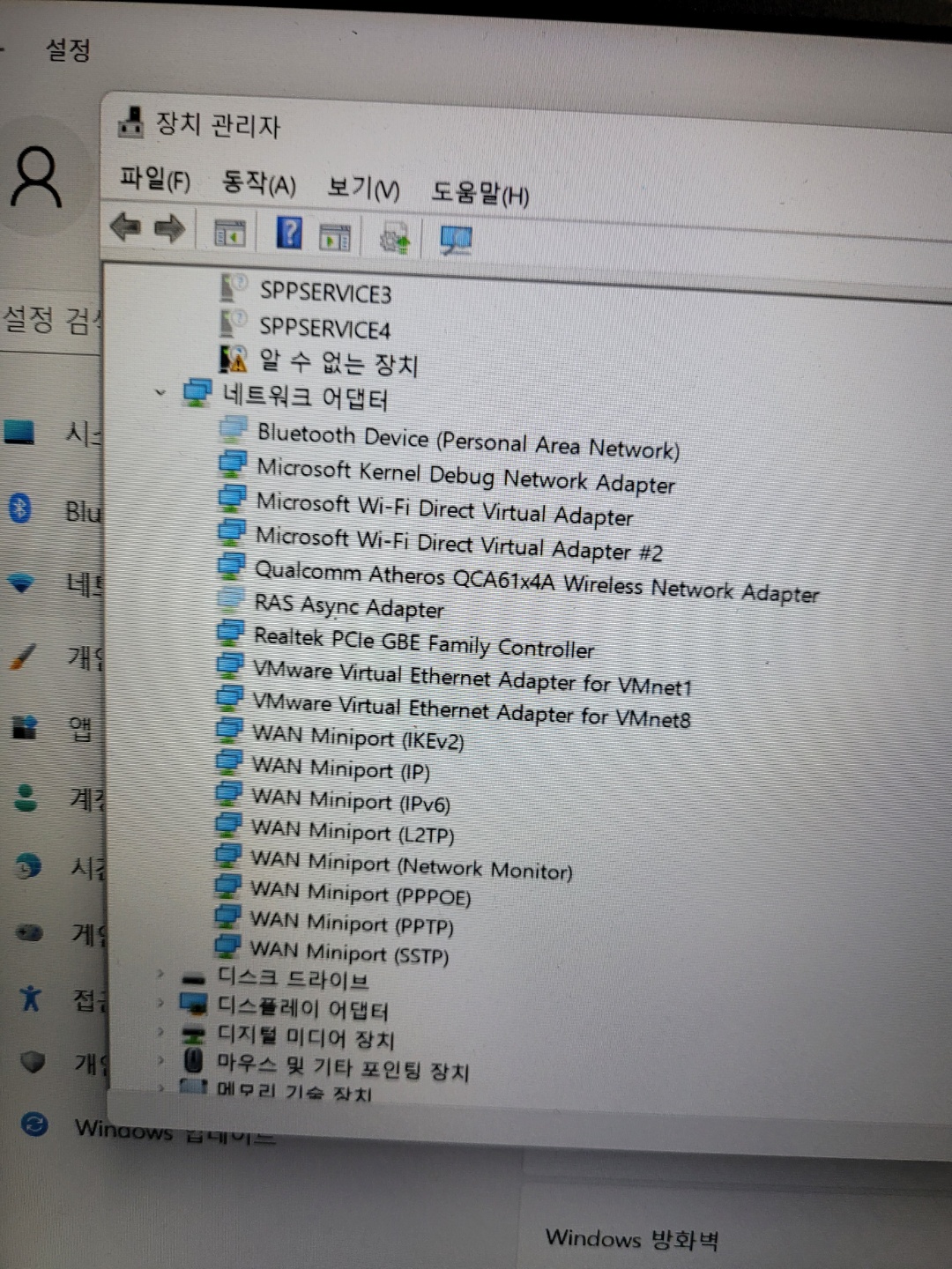 네트워크 어댑터를 보니
