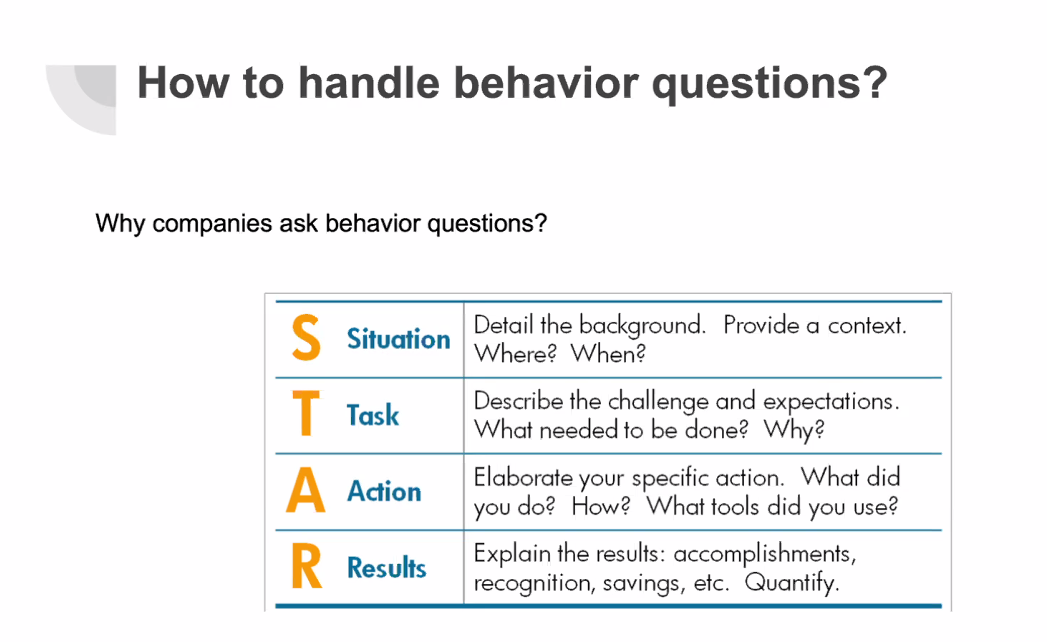 Q: ppt의 behavior questions 예시에 대해서 박사님은 어떻게 답변하셨는지 궁금합니다