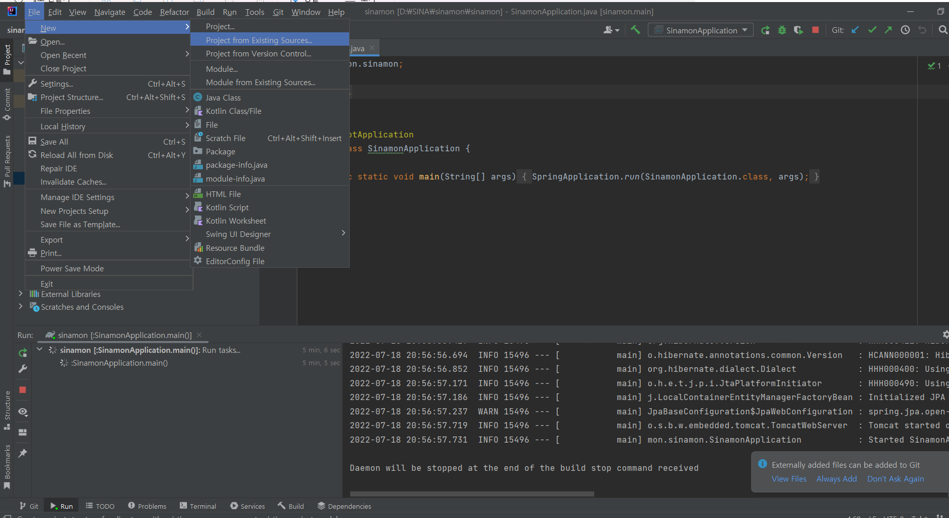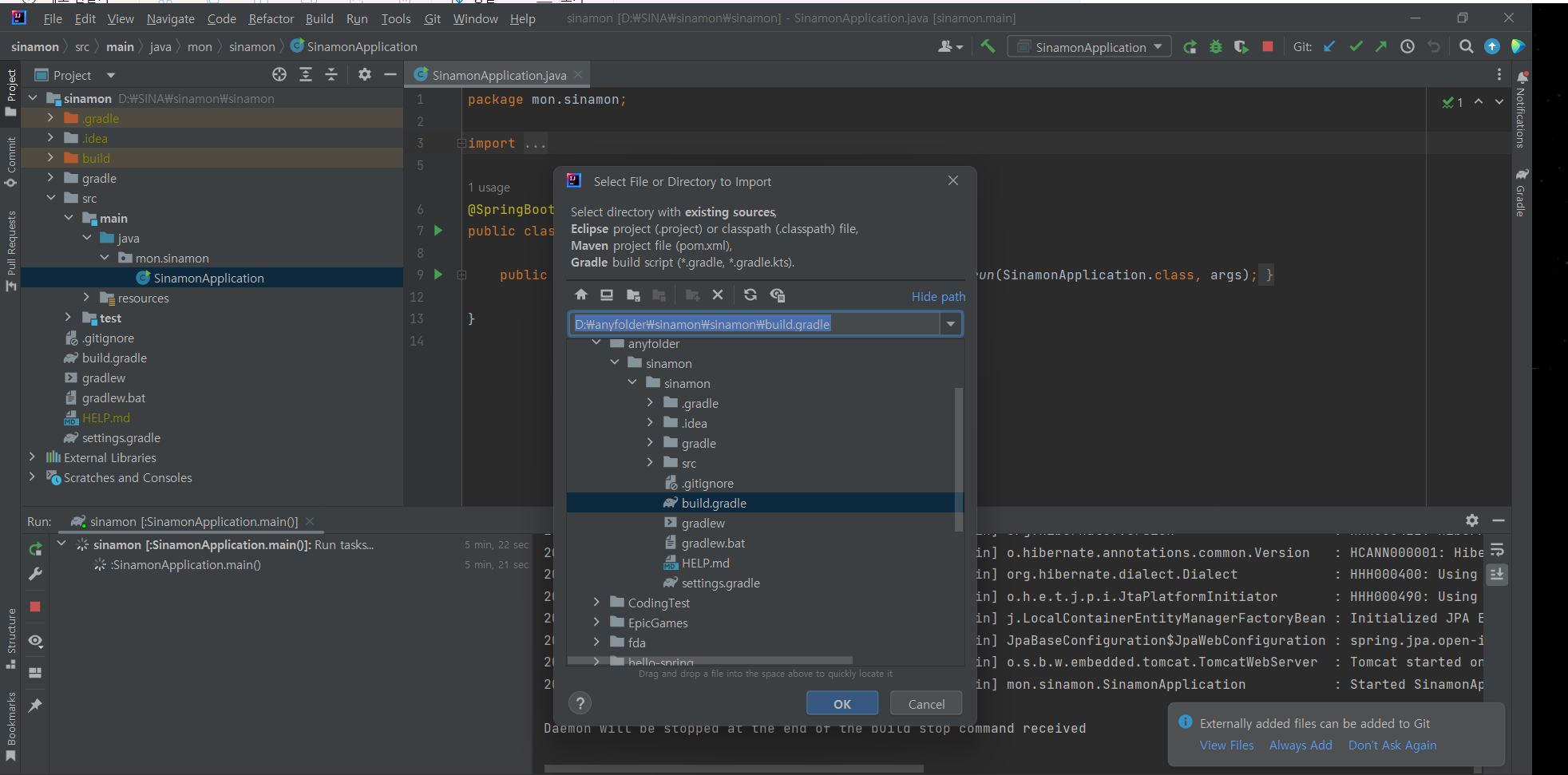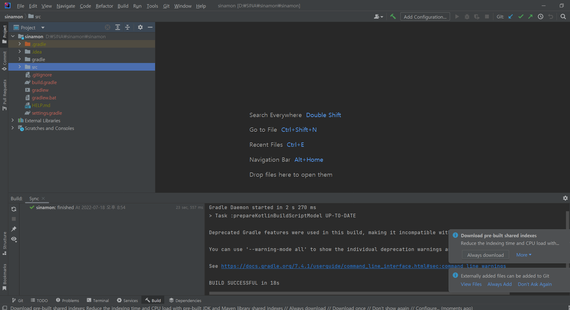 2. start.spring에서 다운받은 폴더를 연동할 레포지터리에 넣어준다