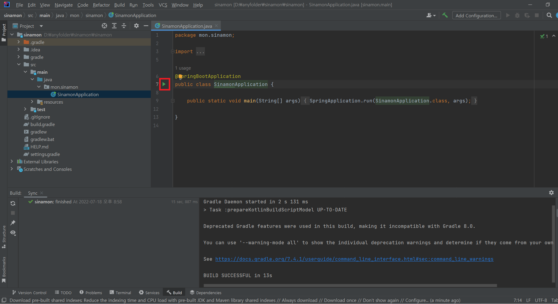 나중에는 이렇게 상단에 RUN이 활성화된다