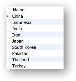 Q3: Show which countries are between China and Japan in terms of population. Order the result by population in descending order