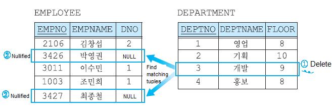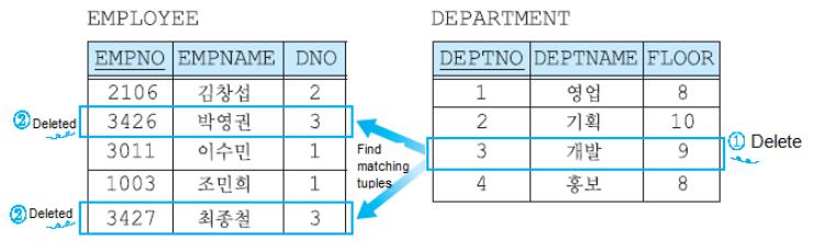 FOREIGN KEY (dno) REFERENCES department(deptno) ON DELETE CASCADE