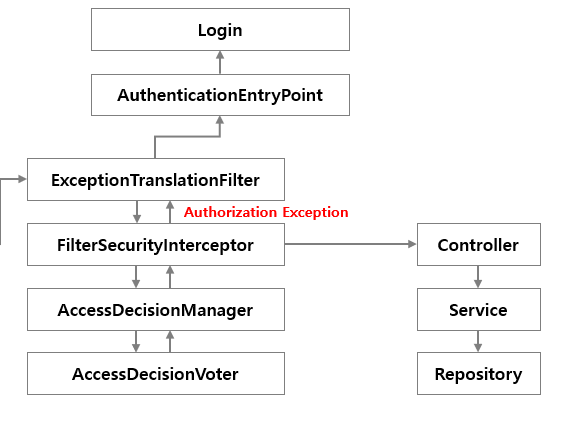 1. 인증 또는 인가에서 예외발생시 ExceptionTranslationFilter에서 처리한다