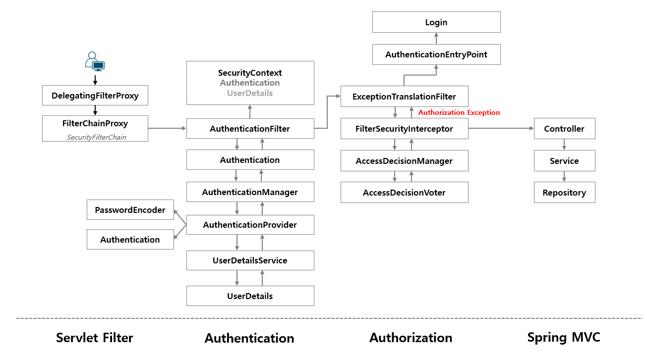 보안적으로 뭔갈 하지 않고, 인증처리를 실질적으로 할 수 있는 클래스를 찾아서 위임한다