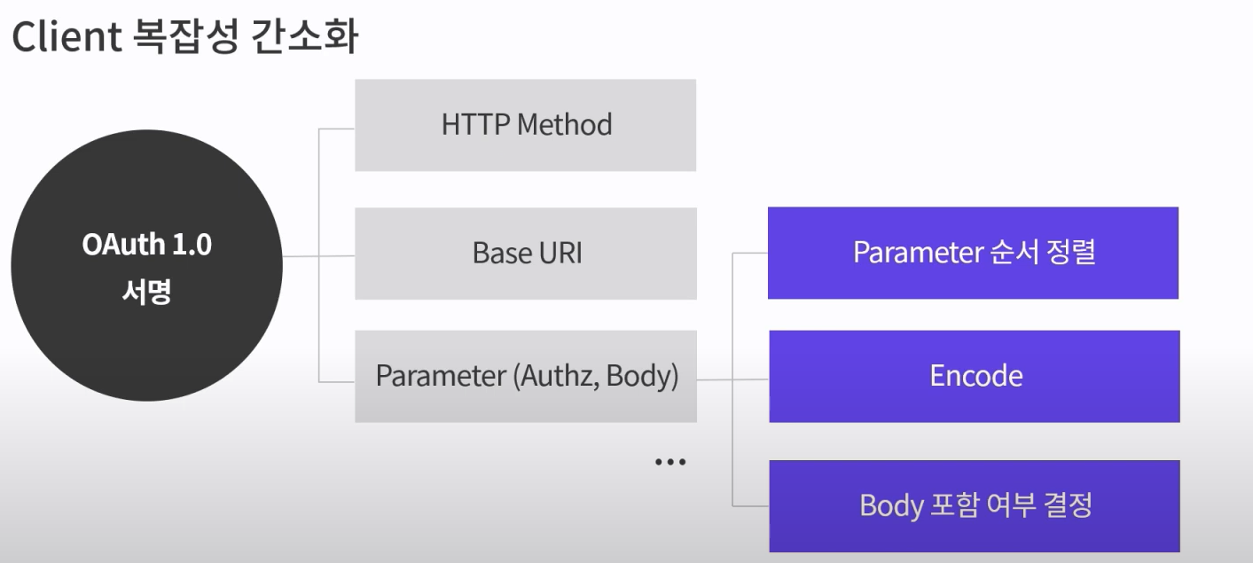 그러나 OAuth1.0 -> OAuth2.0 에서 클라이언트의 복잡성을 최소화하고자