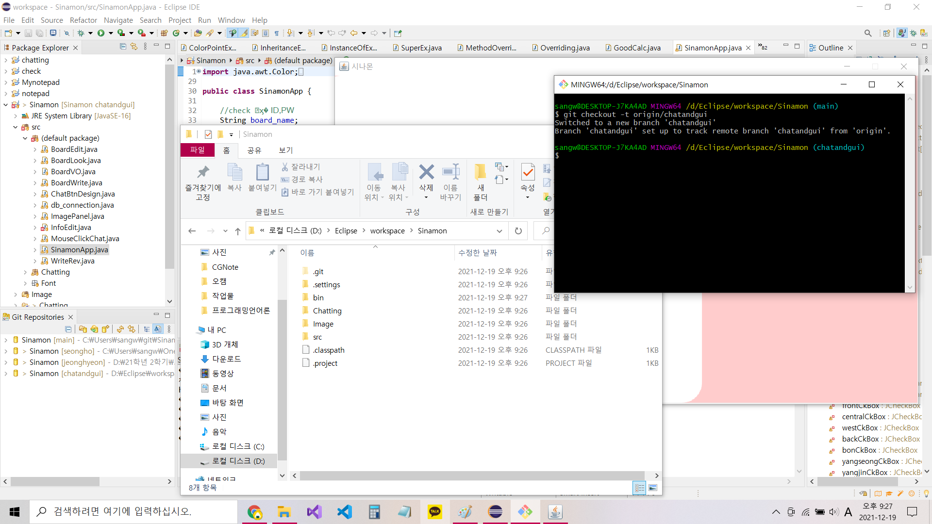 우선 내가 깃 클론한 sinamon 폴더를 보면
