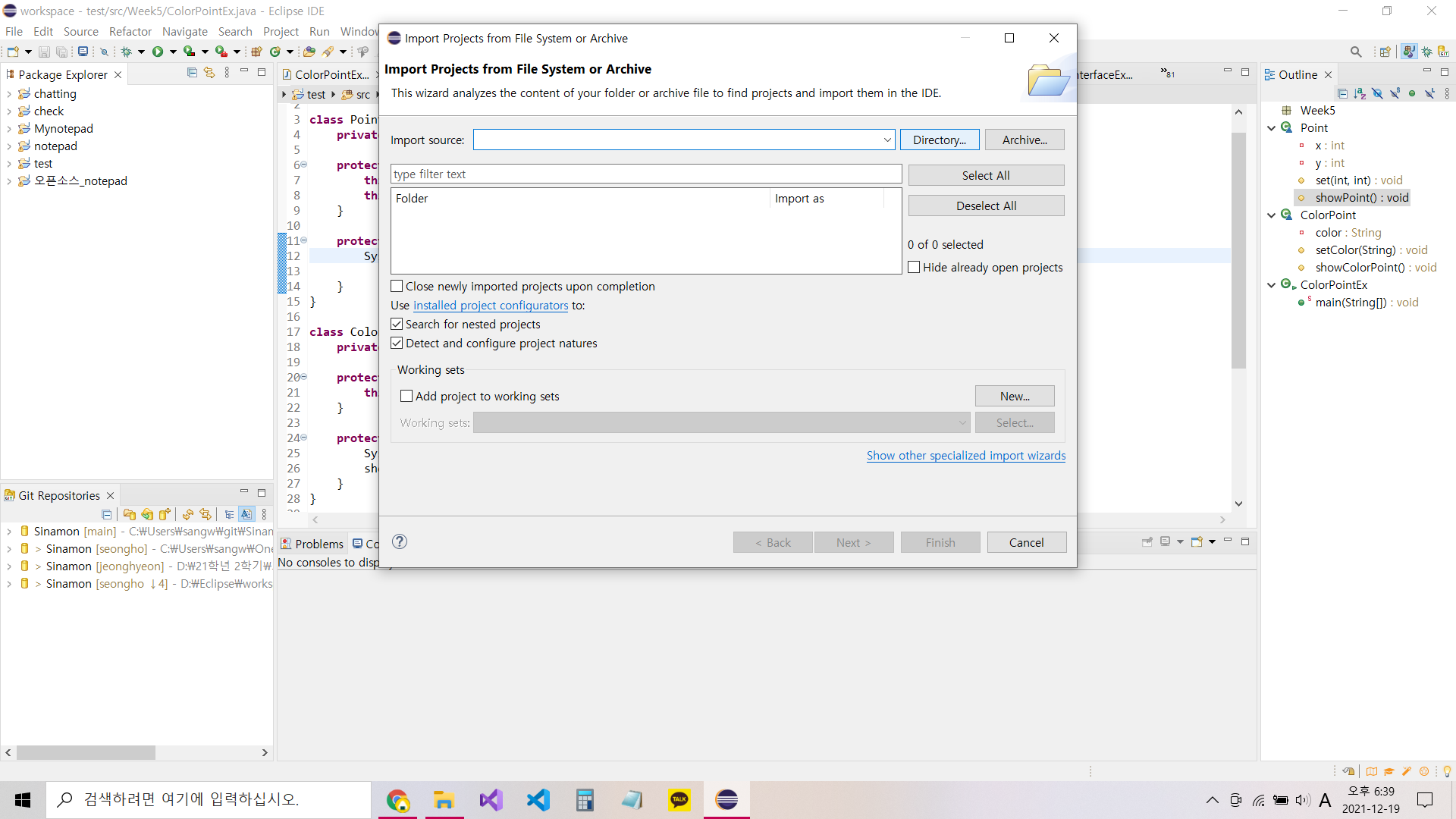 1. 내가 작업하고 있는 eclipse의 workspace에다가 git clone을 했는가