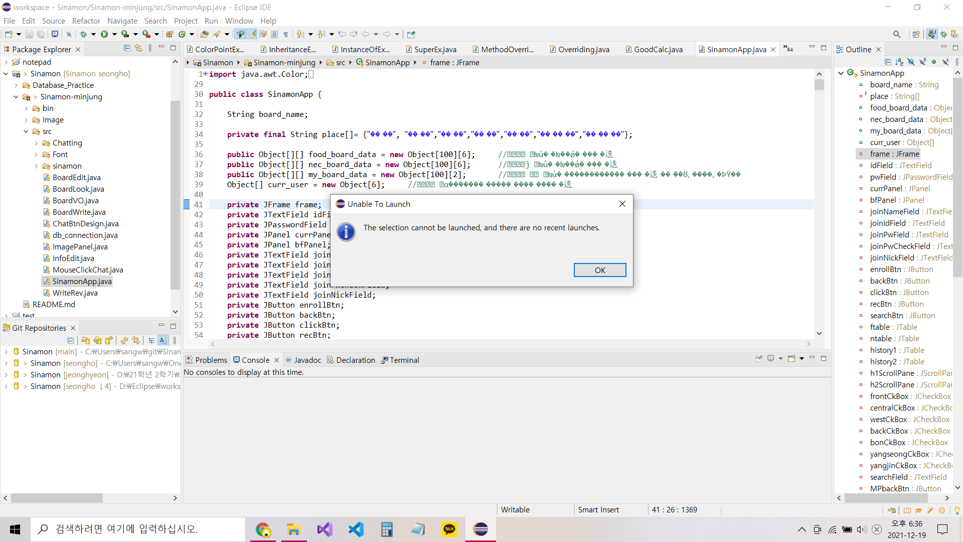 open project를 할때 Sinamon 폴더를 열지않고