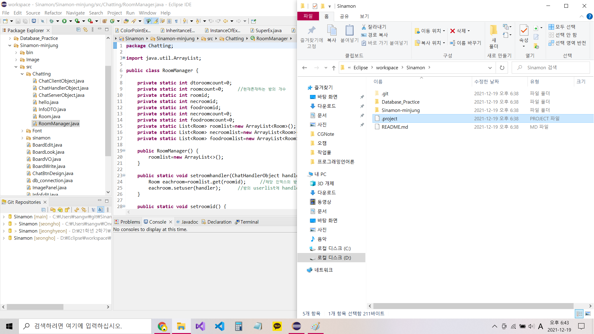 Sinamon 폴더 하위의 Sinamon-minjung를 열었더니