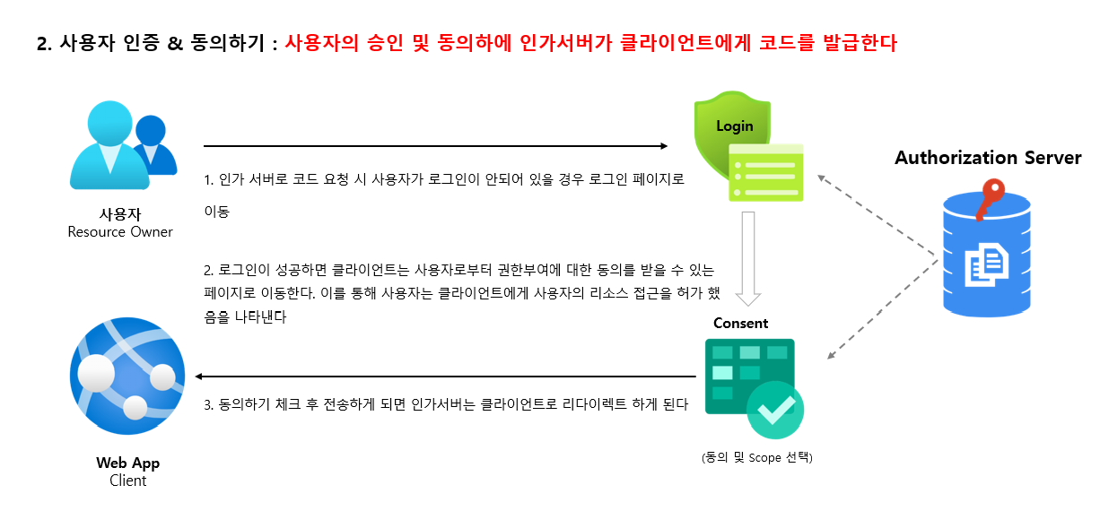 2. 사용자가 승인을 한다(로그인, 권한부여 동의)