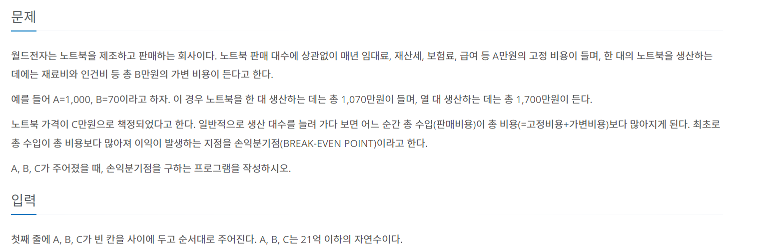 만족하는 N이 존재하려면 C>B여야한다