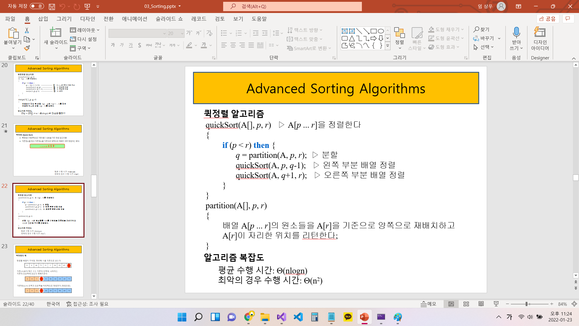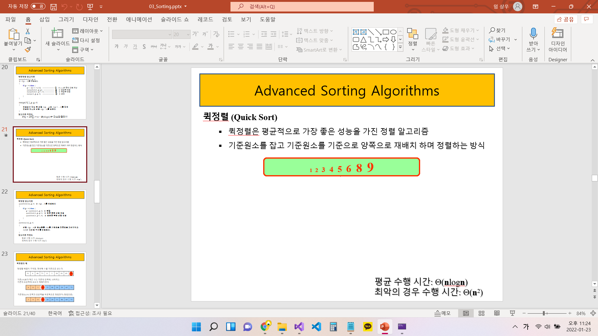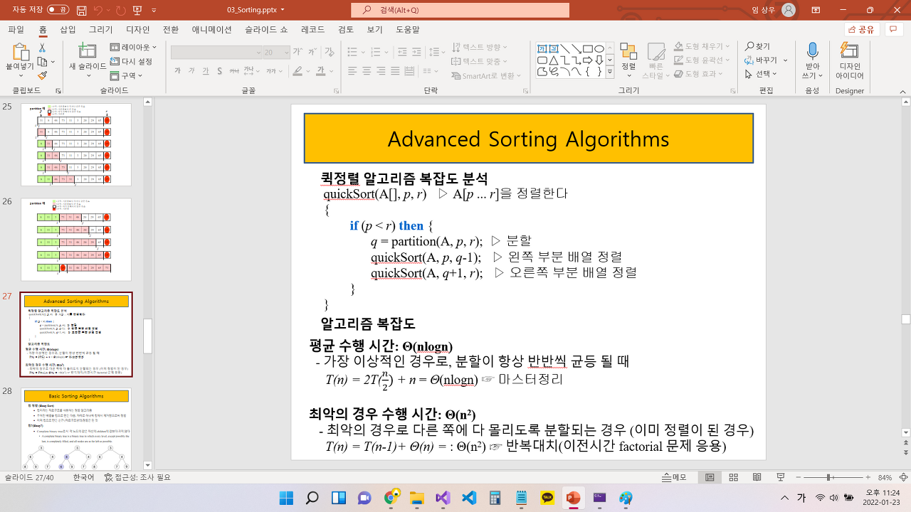 퀵정렬은 평균 O(nlogn)이지만