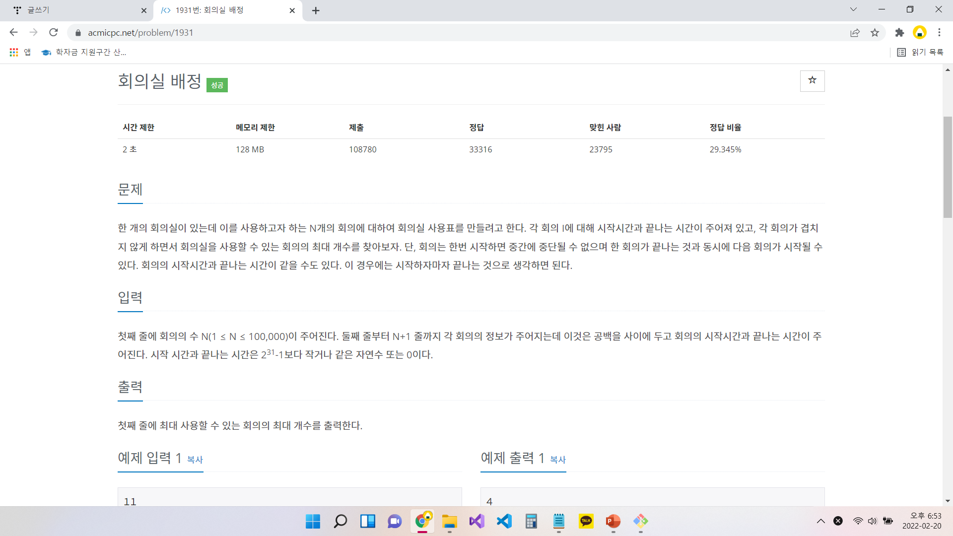 끝나는 시간이 제일 빠른 거 부터 고르는 알고리즘을 선택했다