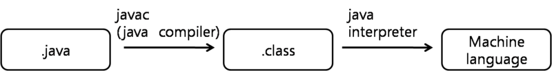 1\. 인터프리터 방식원래 인터프리터의 의미는 고급 언어로 작성된 프로그램을 한줄씩 번역해서 OS에서 인식하는 기계어로 변역하는 역할이다.자바 인터프리터는 JAVAC 명령으로 자바 프로그램을