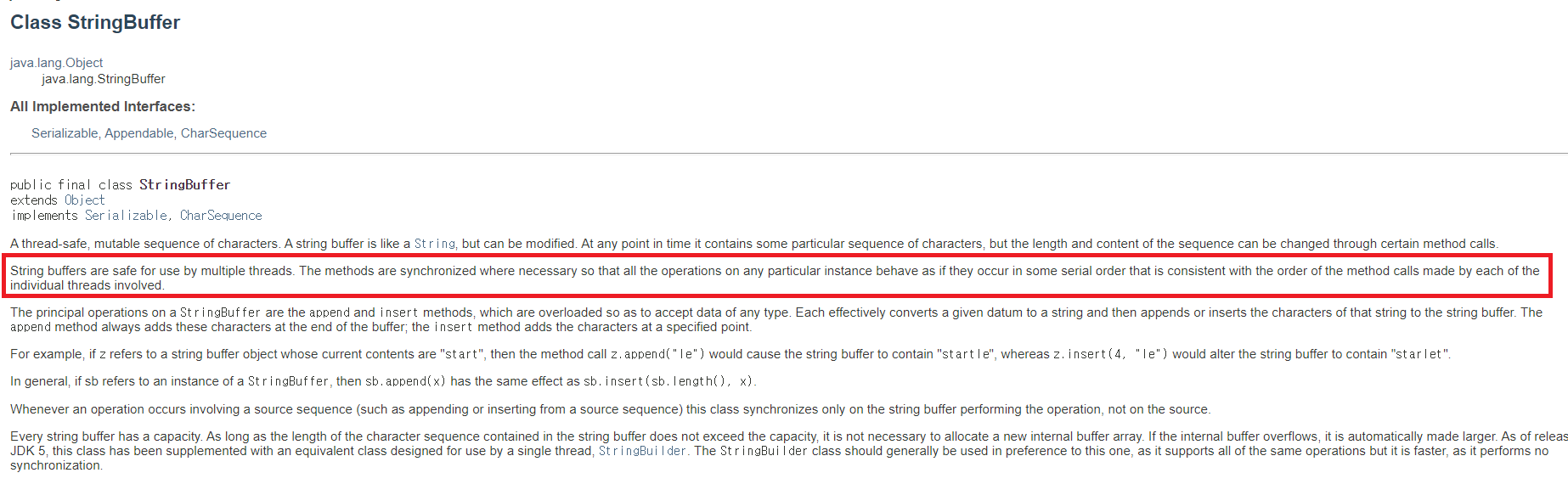 하지만 StringBuffer는 변경가능하지만 synchronizaiton이 적용되어