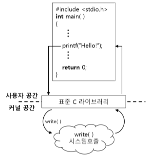 표준 c 라이브러리가 운영체제의 write을 호출하는 방식을 생각하면 이해가 된다