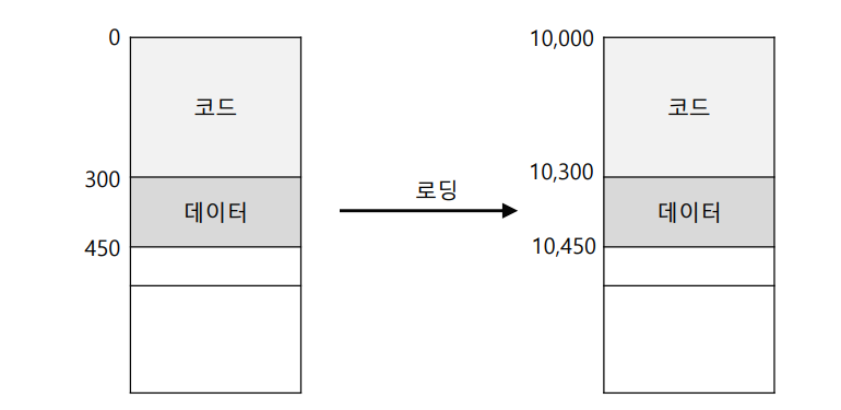 - 상대주소(relative address)를 물리주소(physical address, 절대주소)로 변환