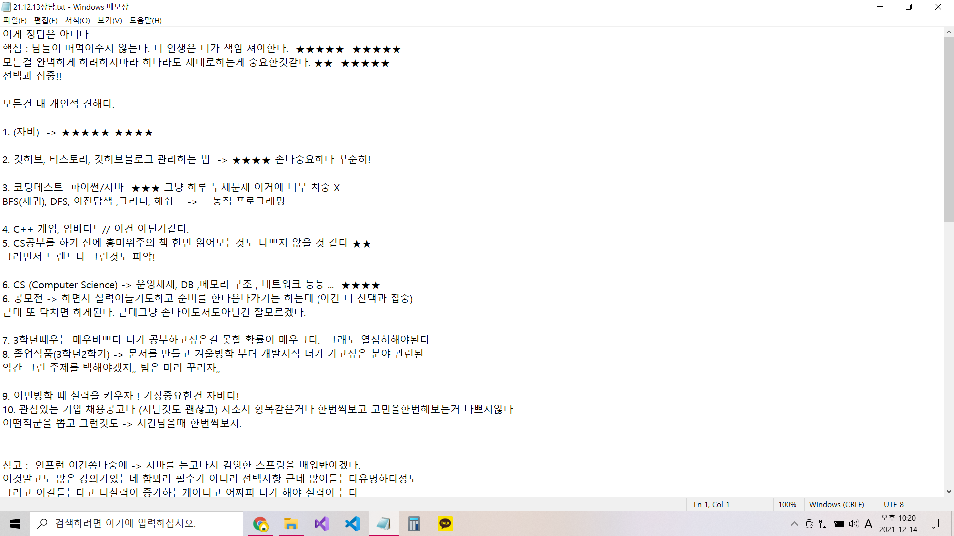 이번 방학을 헛되이 보내지 않아야 겠다는 생각과