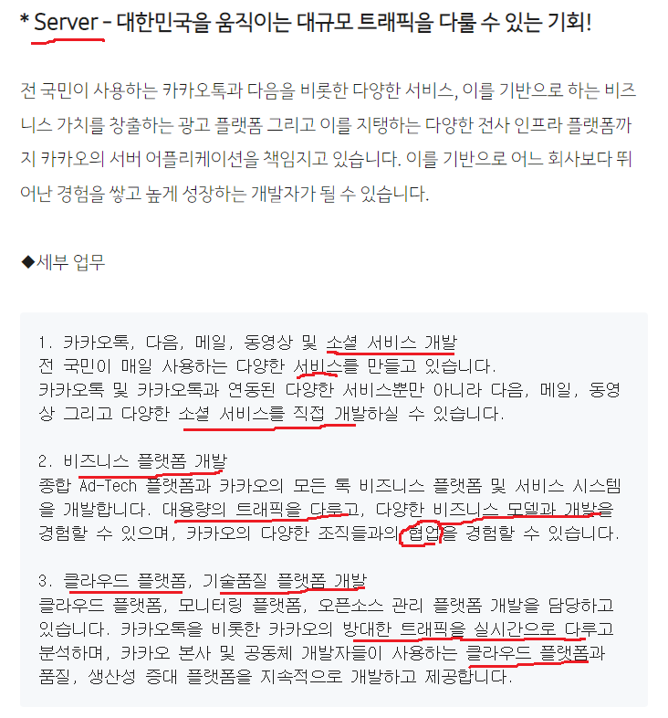 소셜 서비스 개발 및 비즈니스 플랫폼 개발, 클라우드 플랫폼 및 기술품질 플랫폼을 개발한다.