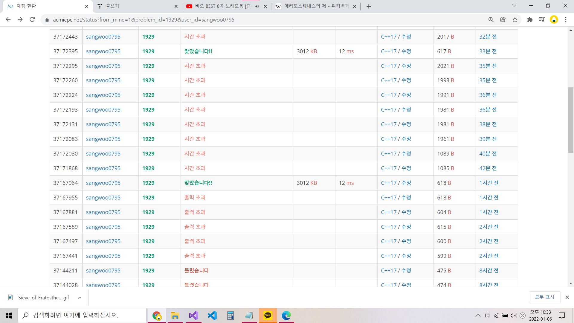 또한 i*k (k < i) 까지는 이미 검사되었으므로 j시작 값은 i*2에서 i*i로 개선할 수 있다.